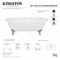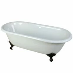 Surround yourself with the perfumed aroma of your favorite candle, grab your favorite piece of literature, and soak all of the stresses of the day away with the all-encompassing embrace of one of Kingston Brass’ finest products, the clawfoot tub. Since the late 19th century, the claw foot tub has stood prominent among bathroom fixtures for its outstanding grandeur. The Aqua Eden 66-inch cast iron double ended clawfoot tub will wholly beautify your home for years to come thanks to its durable and heavy cast iron construction. Elegantly crafted clawfoot tub feet are included to further elevate your home’s traditional eminence. Aside from its feet, this bathtub is enameled in glossy white for a classic look, exceptional durability, and easy care and maintenance for years to come.