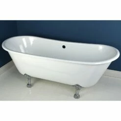 Surround yourself with the perfumed aroma of your favorite candle, grab your favorite piece of literature, and soak all of the stresses of the day away with the all-encompassing embrace of one of Kingston Brass’ finest products, the clawfoot tub. Since the late 19th century, the claw foot tub has stood prominent among bathroom fixtures for its outstanding grandeur. The Aqua Eden 67-inch cast iron double slipper clawfoot tub (without faucet drillings) will wholly beautify your home for years to come thanks to its durable and heavy cast iron construction. Elegantly crafted clawfoot tub feet are included to further elevate your home’s traditional eminence. Aside from its feet, this bathtub is enameled in glossy white for a classic look, exceptional durability, and easy care and maintenance for years to come.