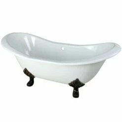 Surround yourself with the perfumed aroma of your favorite candle, grab your favorite piece of literature, and soak all of the stresses of the day away with the all-encompassing embrace of one of Kingston Brass’ finest products, the clawfoot tub. Since the late 19th century, the claw foot tub has stood prominent among bathroom fixtures for its outstanding grandeur. The Aqua Eden 72-inch cast iron double slipper clawfoot tub will wholly beautify your home for years to come thanks to its durable and heavy cast iron construction. Elegantly crafted clawfoot tub feet are included to further elevate your home’s traditional eminence. Aside from its feet, this bathtub is enameled in glossy white for a classic look, exceptional durability, and easy care and maintenance for years to come.