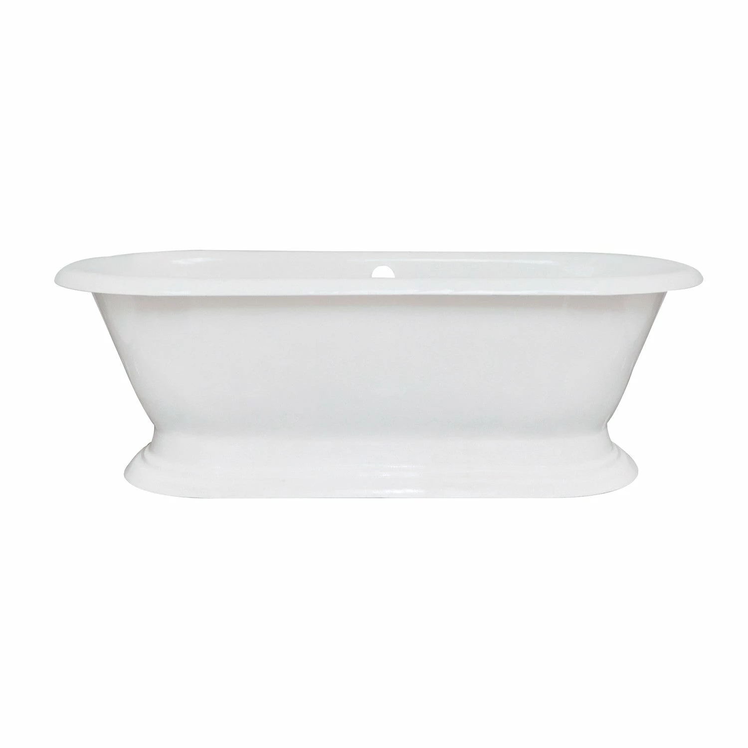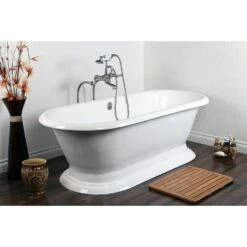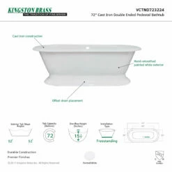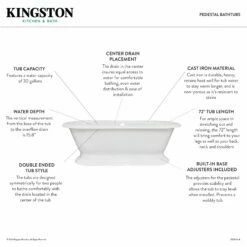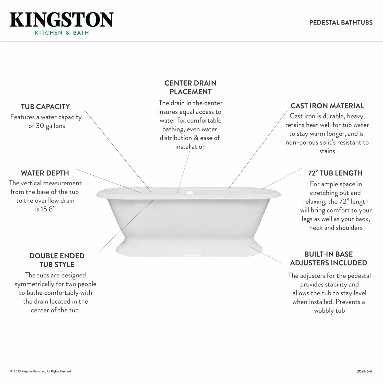 Incorporate the regal beauty of a Kingston Brass pedestal tub for years and years of luxury baths suitable for royalty. Pedestal tubs are generally categorized as the contemporary descendant of the classic clawfoot tub. However, unlike the clawfoot tub, pedestal tubs rely on a solid base ring bordering the bottom perimeter to support and raise it off the floor, giving it a one-of-a-kind personality. The Aqua Eden 72-inch cast iron Double Ended Pedestal Tub No Faucet Drillings will wholly beautify your home for years to come thanks to its durable and heavy cast iron construction. This bathtub is enameled in glossy white for a classic look, exceptional durability, and easy care and maintenance for years to come.