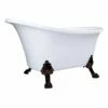 Surround yourself with the perfumed aroma of your favorite candle, grab your favorite piece of literature, and soak all of the stresses of the day away with the all-encompassing embrace of one of Kingston Brass’ finest products, the clawfoot tub. Since the late 19th century, the claw foot tub has stood prominent among bathroom fixtures for its outstanding grandeur. The Kingston Brass Aqua Eden 61-inch cast iron double slipper clawfoot tub (no faucet drillings) will wholly beautify your home for years to come thanks to its durable and heavy cast iron construction. Elegantly crafted clawfoot tub feet are included to further elevate your home’s traditional eminence. Aside from its feet, this bathtub is enameled in glossy white for a classic look, exceptional durability, and easy care and maintenance for years to come.