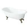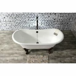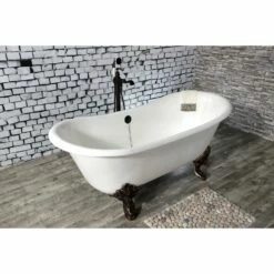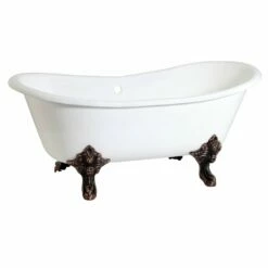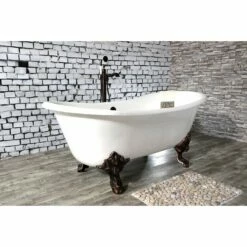 Surround yourself with the perfumed aroma of your favorite candle, grab your favorite piece of literature, and soak all of the stresses of the day away with the all-encompassing embrace of one of Kingston Brass’ finest products, the clawfoot tub. Since the late 19th century, the claw foot tub has stood prominent among bathroom fixtures for its outstanding grandeur. The Kingston Brass Aqua Eden 67-inch cast iron double slipper clawfoot tub (no faucet drillings) will wholly beautify your home for years to come thanks to its durable and heavy cast iron construction. Elegantly crafted clawfoot tub feet are included to further elevate your home’s traditional eminence. Aside from its feet, this bathtub is enameled in glossy white for a classic look, exceptional durability, and easy care and maintenance for years to come.