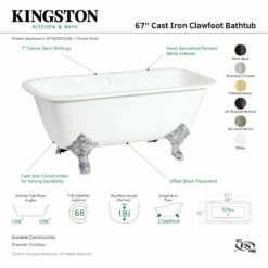 Surround yourself with the perfumed aroma of your favorite candle, grab your favorite piece of literature, and soak all of the stresses of the day away with the all-encompassing embrace of one of Kingston Brass’ finest products, the clawfoot tub. Since the late 19th century, the claw foot tub has stood prominent among bathroom fixtures for its outstanding grandeur. The Kingston Brass Aqua Eden 67-inch cast iron double ended clawfoot tub with 7-inch faucet drillings will wholly beautify your home for years to come thanks to its durable and heavy cast iron construction. Elegantly crafted clawfoot tub feet are included to further elevate your home’s traditional eminence. Aside from its feet, this bathtub is enameled in glossy white for a classic look, exceptional durability, and easy care and maintenance for years to come.