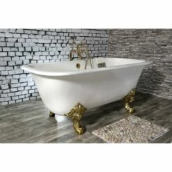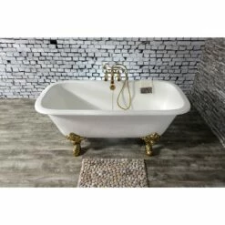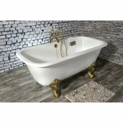 Aqua Eden VCTQ7D6732NL2 67-Inch Cast Iron Double Ended Clawfoot Tub with 7-Inch Faucet Drillings, White/Polished Brass