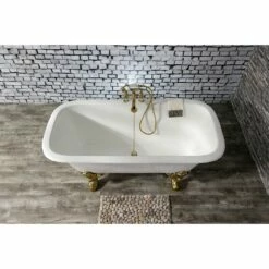 Aqua Eden VCTQ7D6732NL2 67-Inch Cast Iron Double Ended Clawfoot Tub with 7-Inch Faucet Drillings, White/Polished Brass