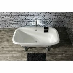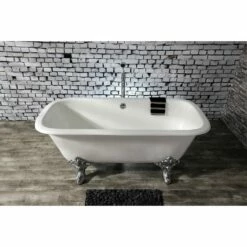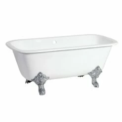 Surround yourself with the perfumed aroma of your favorite candle, grab your favorite piece of literature, and soak all of the stresses of the day away with the all-encompassing embrace of one of Kingston Brass’ finest products, the clawfoot tub. Since the late 19th century, the claw foot tub has stood prominent among bathroom fixtures for its outstanding grandeur. The Kingston Brass Aqua Eden 67-inch cast iron double ended clawfoot tub (no faucet drillings) will wholly beautify your home for years to come thanks to its durable and heavy cast iron construction. Elegantly crafted clawfoot tub feet are included to further elevate your home’s traditional eminence. Aside from its feet, this bathtub is enameled in glossy white for a classic look, exceptional durability, and easy care and maintenance for years to come.