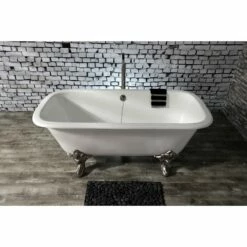 Aqua Eden VCTQND6732NL8 67-Inch Cast Iron Double Ended Clawfoot Tub (No Faucet Drillings), White/Brushed Nickel