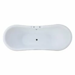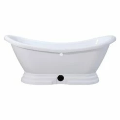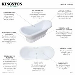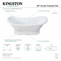 Incorporate the regal beauty of a Kingston Brass pedestal tub for years and years of luxury baths suitable for royalty. Pedestal tubs are generally categorized as the contemporary descendant of the classic clawfoot tub. However, unlike the clawfoot tub, pedestal tubs rely on a solid base ring bordering the bottom perimeter to support and raise it off the floor, giving it a one-of-a-kind personality. The Aqua Eden 69-inch acrylic double slipper pedestal tub with 7-inch faucet drillings will wholly beautify your home for years to come thanks to its durable and easily repairable acrylic construction. This bathtub is finished inside and out in a brilliant, high-gloss white that ensures crisp aesthetics and easy care now and well in the future.
