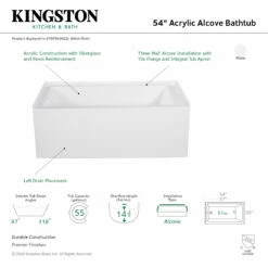 Create lasting memories of bubble baths with your children or relax from the stresses of the day with a top-notch alcove tub by Kingston Brass. Extremely user-friendly with effortless installation and simplistic construction, the alcove tub is the perfect addition to your home if you are looking for pristine performance and polished refinery. The Aqua Eden 54-inch acrylic alcove tub with left hand drain hole will wholly beautify your home for years to come thanks to its durable and easily repairable acrylic construction. This bathtub is finished inside and out in a brilliant, high-gloss white that ensures crisp aesthetics and easy care now and well in the future.