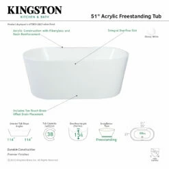 Elevate your home’s contemporary decorum, while you effortlessly recline in the cozy embrace of a Kingston Brass freestanding bathtub. Highly acclaimed for its clean and contemporary yet minimalist shape, this tub will be made the focal point in many bathrooms. The 51-inch acrylic freestanding tub will wholly beautify your home for years to come thanks to its durable and easily repairable acrylic construction. This bathtub is finished inside and out in a brilliant, high-gloss white that ensures crisp aesthetics and easy care now and well in the future.