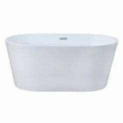 Elevate your home’s contemporary decorum, while you effortlessly recline in the cozy embrace of a Kingston Brass freestanding bathtub. Highly acclaimed for its clean and contemporary yet minimalist shape, this tub will be made the focal point in many bathrooms. The Aqua Eden 56 in. acrylic freestanding tub will wholly beautify your home for years to come thanks to its durable and easily repairable acrylic construction. This bathtub is finished inside and out in a brilliant, high-gloss white that ensures crisp aesthetics and easy care now and well in the future. Includes overflow and drain.