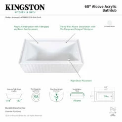 Create lasting memories of bubble baths with your children or relax from the stresses of the day with a top-notch alcove tub by Kingston Brass. Extremely user-friendly with effortless installation and simplistic construction, the alcove tub is the perfect addition to your home if you are looking for pristine performance and polished refinery. The Aqua Eden 60-inch acrylic alcove bathtub will wholly beautify your home for years to come thanks to its durable and easily repairable acrylic construction. This bathtub is finished inside and out in a brilliant, high-gloss white that ensures crisp aesthetics and easy care now and well in the future.