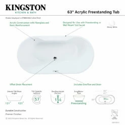 Elevate your home’s contemporary decorum, while you effortlessly recline in the cozy embrace of a Kingston Brass freestanding bathtub. Highly acclaimed for its clean and contemporary yet minimalist shape, this tub will be made the focal point in many bathrooms. The 63-inch acrylic freestanding tub with drain will wholly beautify your home for years to come thanks to its durable and easily repairable acrylic construction. This bathtub is finished inside and out in a brilliant, high-gloss white that ensures crisp aesthetics and easy care now and well in the future.