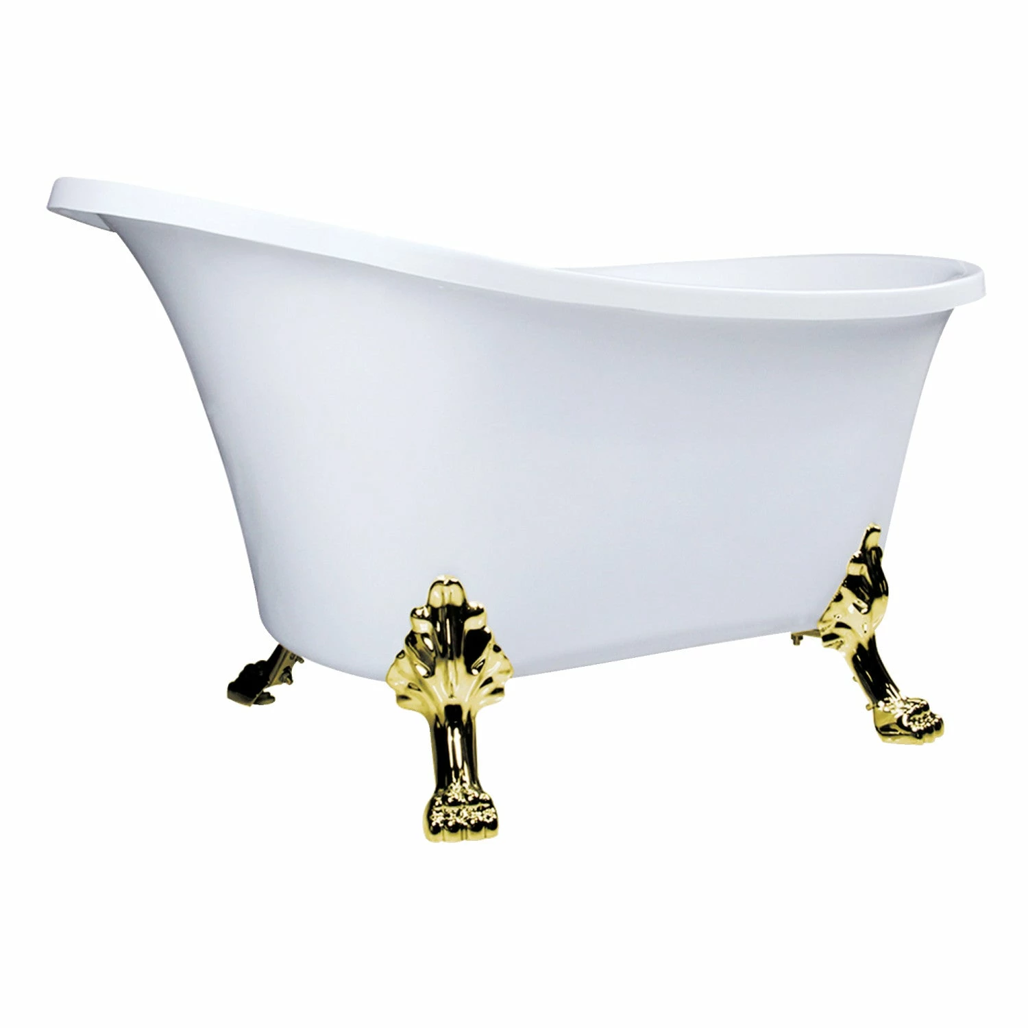 Aqua Eden VTND512824WAC2 51-Inch Acrylic Single Slipper Clawfoot Tub (No Faucet Drillings), White/Polished Brass