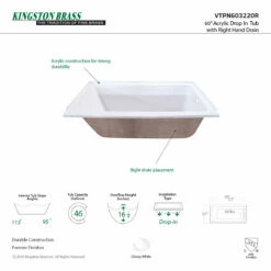 Aqua Eden VTPN603220R 60-Inch Acrylic Rectangular Drop-In Tub with Right Hand Drain, White