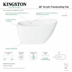 Elevate your home’s contemporary decorum, while you effortlessly recline in the cozy embrace of a Kingston Brass freestanding bathtub. Highly acclaimed for its clean and contemporary yet minimalist shape, this tub will be made the focal point in many bathrooms. The 48-inch acrylic freestanding tub with drain will wholly beautify your home for years to come thanks to its durable and easily repairable acrylic construction. This bathtub is finished inside and out in a brilliant, high-gloss white that ensures crisp aesthetics and easy care now and well in the future.