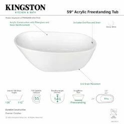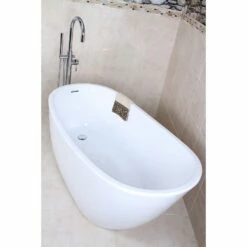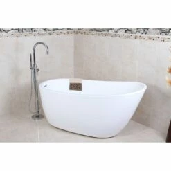 Elevate your home’s contemporary decorum, while you effortlessly recline in the cozy embrace of a Kingston Brass freestanding bathtub. Highly acclaimed for its clean and contemporary yet minimalist shape, this tub will be made the focal point in many bathrooms. The Aqua Eden 59-Inch Acrylic Freestanding Single Slipper Tub with Drain will wholly beautify your home for years to come thanks to its durable and easily repairable acrylic construction. This bathtub is finished inside and out in a brilliant, high-gloss white that ensures crisp aesthetics and easy care now and well in the future.