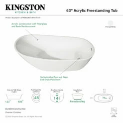 Elevate your home’s contemporary decorum, while you effortlessly recline in the cozy embrace of a Kingston Brass freestanding bathtub. Highly acclaimed for its clean and contemporary yet minimalist shape, this tub will be made the focal point in many bathrooms. The Aqua Eden 63 in. acrylic single slipper freestanding tub with drain will wholly beautify your home for years to come thanks to its durable and easily repairable acrylic construction. This bathtub is finished inside and out in a brilliant, high-gloss white that ensures crisp aesthetics and easy care now and well in the future.