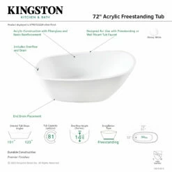Elevate your home’s contemporary decorum, while you effortlessly recline in the cozy embrace of a Kingston Brass freestanding bathtub. Highly acclaimed for its clean and contemporary yet minimalist shape, this tub will be made the focal point in many bathrooms. The 72-inch acrylic freestanding tub with drain will wholly beautify your home for years to come thanks to its durable and easily repairable acrylic construction. This bathtub is finished inside and out in a brilliant, high-gloss white that ensures crisp aesthetics and easy care now and well in the future.
