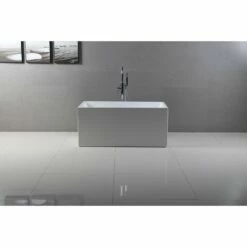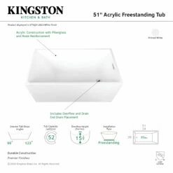 Elevate your home’s contemporary decorum, while you effortlessly recline in the cozy embrace of a Kingston Brass freestanding bathtub. Highly acclaimed for its clean and contemporary yet minimalist shape, this tub will be made the focal point in many bathrooms. The Aqua Eden 51 in. acrylic freestanding tub with drain will wholly beautify your home for years to come thanks to its durable and easily repairable acrylic construction. This bathtub is finished inside and out in a brilliant, high-gloss white that ensures crisp aesthetics and easy care now and well in the future.