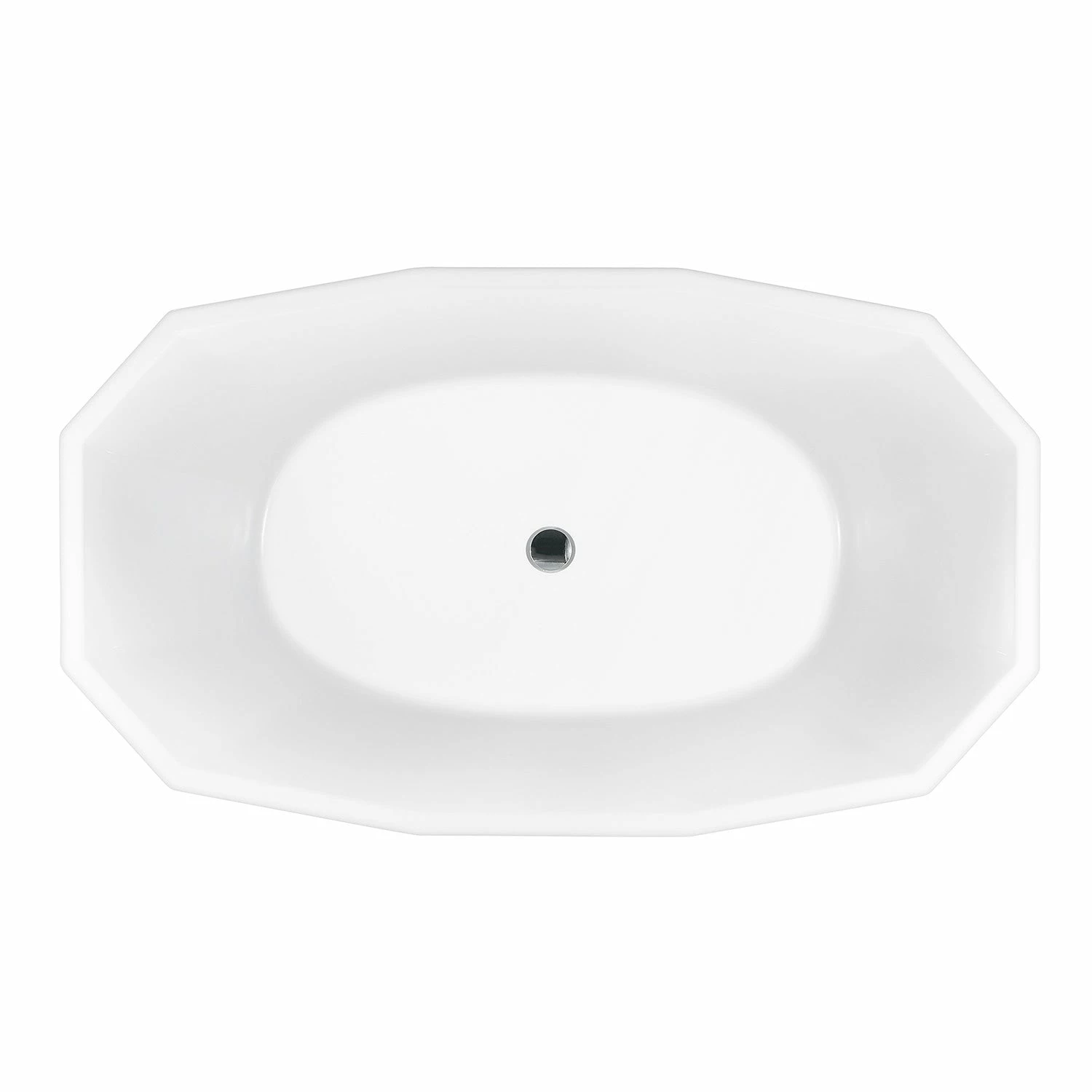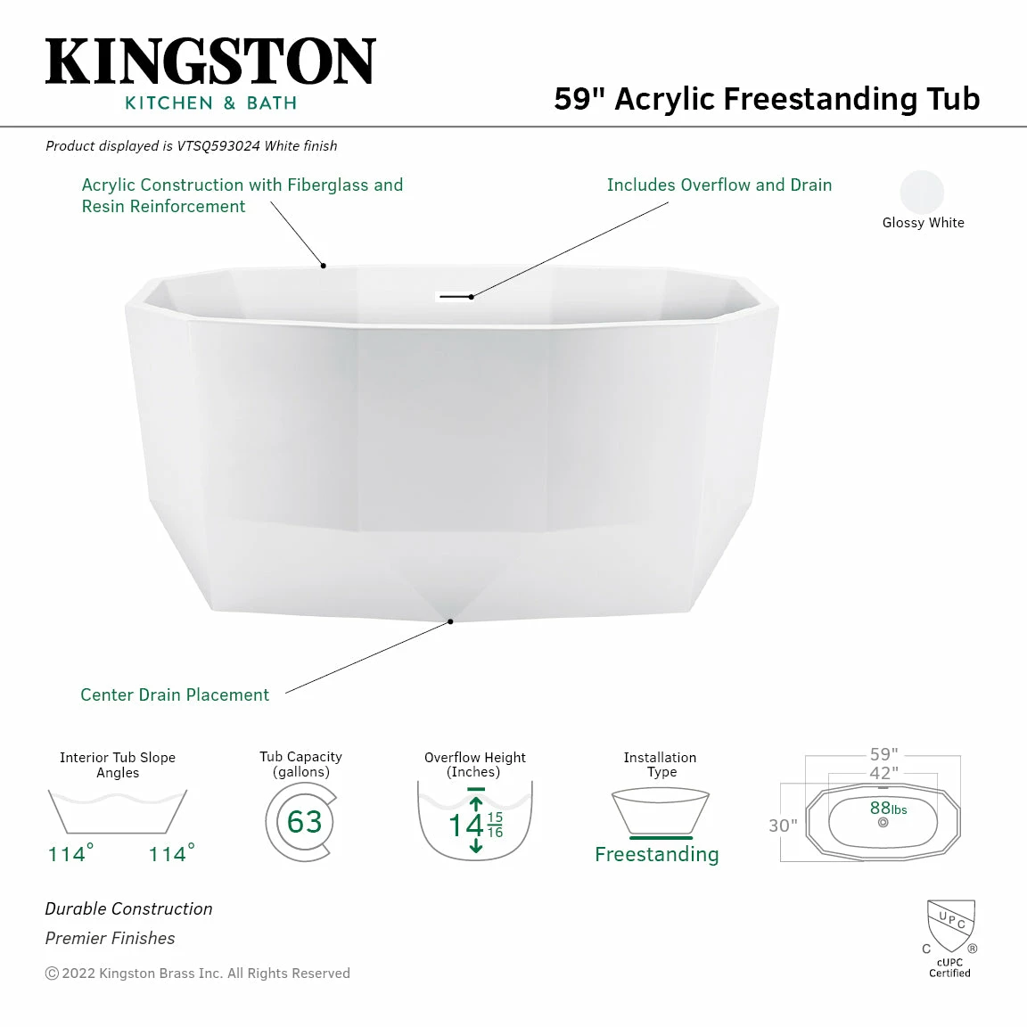 Elevate your home’s contemporary decorum, while you effortlessly recline in the cozy embrace of a Kingston Brass freestanding bathtub. Highly acclaimed for its clean and contemporary yet minimalist shape, this tub will be made the focal point in many bathrooms. The Aqua Eden 59-inch acrylic freestanding tub will wholly beautify your home for years to come thanks to its durable and easily repairable acrylic construction. Tub drain is included. This bathtub is finished inside and out in a brilliant, high-gloss white that ensures crisp aesthetics and easy care now and well in the future.