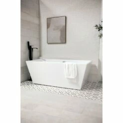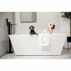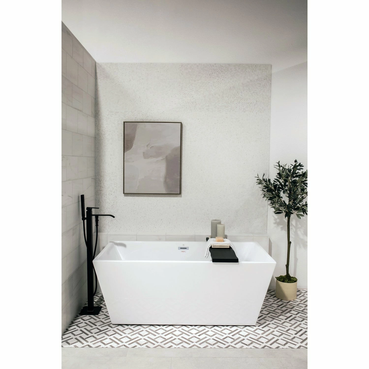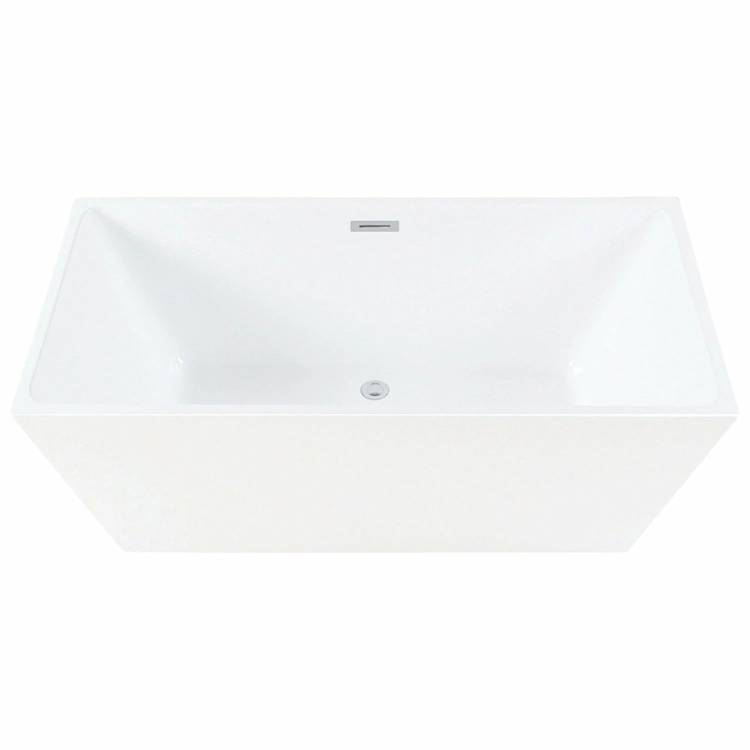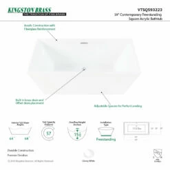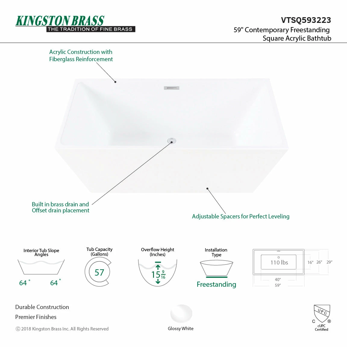 Elevate your home’s contemporary decorum, while you effortlessly recline in the cozy embrace of a Kingston Brass freestanding bathtub. Highly acclaimed for its clean and contemporary yet minimalist shape, this tub will be made the focal point in many bathrooms. The Aqua Eden 59-Inch Freestanding Square Acrylic Tub with Drain will wholly beautify your home for years to come thanks to its durable and easily repairable acrylic construction. This bathtub is finished inside and out in a brilliant, high-gloss white that ensures crisp aesthetics and easy care now and well in the future.