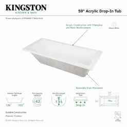 Wallow in the polished elegance of the drop-in tub for a luxury bathing experience unlike any other. Mirroring the serenity and construction of a jacuzzi, drop-in bathtubs are highly sought after by those who seek a luxury spa experience right inside their own home. The Aqua Eden 59-inch acrylic drop-in tub with reversible drain will wholly beautify your home for years to come thanks to its durable and easily repairable acrylic construction. This bathtub is finished inside and out in a brilliant, high-gloss white that ensures crisp aesthetics and easy care now and well in the future.