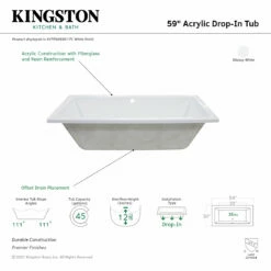 Wallow in the polished elegance of the drop-in tub for a luxury bathing experience unlike any other. Mirroring the serenity and construction of a jacuzzi, drop-in bathtubs are highly sought after by those who seek a luxury spa experience right inside their own home. The Aqua Eden 59-inch acrylic drop-in tub with center drain will wholly beautify your home for years to come thanks to its durable and easily repairable acrylic construction. This bathtub is finished inside and out in a brilliant, high-gloss white that ensures crisp aesthetics and easy care now and well in the future.