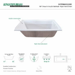 Aqua Eden XVTPN603220R 60-Inch Acrylic Rectangular Drop-In Tub with Right Hand Drain, White