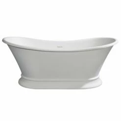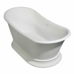Arcticstone VRTDS683027 67-Inch Solid Surface White Stone Pedestal Tub with Drain, Matte White/Glossy White