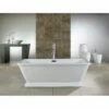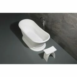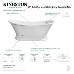 Elevate your home’s contemporary decorum, while you effortlessly recline in the cozy embrace of a Kingston Brass freestanding bathtub. Highly acclaimed for its clean and contemporary yet minimalist shape, this tub will be made the focal point in many bathrooms. The Aqua Eden 68-inch double slipper solid surface freestanding tub with drain will wholly beautify your home for years to come thanks to its durable and scratch resistant solid surface white stone construction. This bathtub’s exterior is finished in an elegant matte white to bring high design into your space, and its interior and inner rim are polished to a glossy finish to make cleaning and care easier.