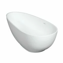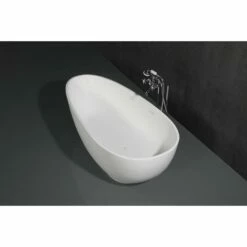 Arcticstone VRTOV683321 67-Inch Egg Shaped Solid Surface Freestanding Tub with Drain, Glossy White/Matte White