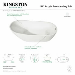 Elevate your home’s contemporary decorum, while you effortlessly recline in the cozy embrace of a Kingston Brass freestanding bathtub. Highly acclaimed for its clean and contemporary yet minimalist shape, this tub will be made the focal point in many bathrooms. The Aqua Eden Arcticstone 72-inch egg shaped solid surface freestanding tub with drain will wholly beautify your home for years to come thanks to its durable and scratch resistant solid surface white stone construction. This bathtub’s exterior is finished in an elegant matte white to bring high design into your space, and its interior and inner rim are polished to a glossy finish to make cleaning and care easier.