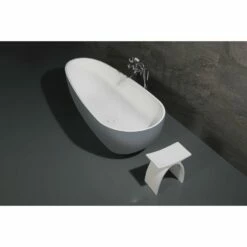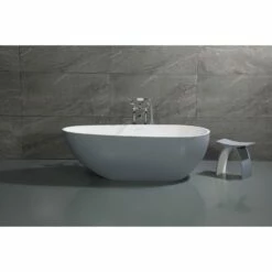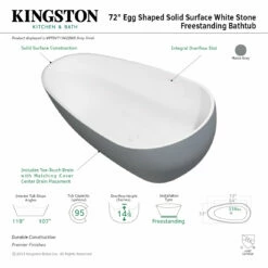 Elevate your home’s contemporary decorum, while you effortlessly recline in the cozy embrace of a Kingston Brass freestanding bathtub. Highly acclaimed for its clean and contemporary yet minimalist shape, this tub will be made the focal point in many bathrooms. The Aqua Eden Arcticstone 72-inch egg shaped solid surface freestanding tub with drain will wholly beautify your home for years to come thanks to its durable and scratch resistant solid surface white stone construction. This bathtub’s exterior is finished in a sultry matte grey to bring a uniquely sensual designer influence into your space, while its interior and inner rim are a polished glossy white to ensure simple care and cleaning over time.