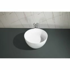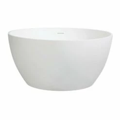 Arcticstone VRTRO454523 46-Inch Round Solid Surface White Stone Freestanding Tub with Drain, Matte White