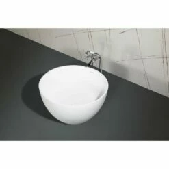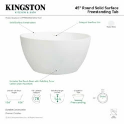 Elevate your home’s contemporary decorum, while you effortlessly recline in the cozy embrace of a Kingston Brass freestanding bathtub. Highly acclaimed for its clean and contemporary yet minimalist shape, this tub will be made the focal point in many bathrooms. The Aqua Eden 45-inch round solid surface freestanding tub with drain will wholly beautify your home for years to come thanks to its durable and scratch resistant solid surface white stone construction. This bathtub is finished inside and out in an elegant, high-design inspired matte white that brings subtle but unmistakable sophistication to the bathing experience.