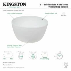 Arcticstone VRTRS515124 51-Inch Solid Surface White Stone Freestanding Tub with Drain, Matte White