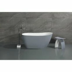 Elevate your home’s contemporary decorum, while you effortlessly recline in the cozy embrace of a Kingston Brass freestanding bathtub. Highly acclaimed for its clean and contemporary yet minimalist shape, this tub will be made the focal point in many bathrooms. The Aqua Eden Arcticstone 52-inch solid surface freestanding tub wholly beautify your home for years to come thanks to its durable and scratch resistant solid surface white stone construction. This bathtub’s exterior is finished in a sultry matte grey to bring a uniquely sensual designer influence into your space, while its interior and inner rim are a polished glossy white to ensure simple care and cleaning over time.