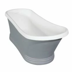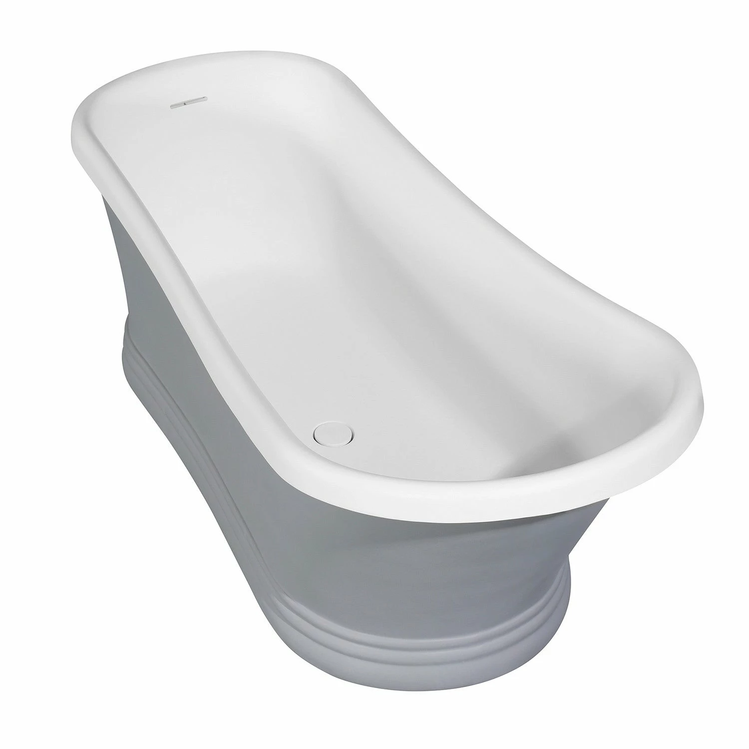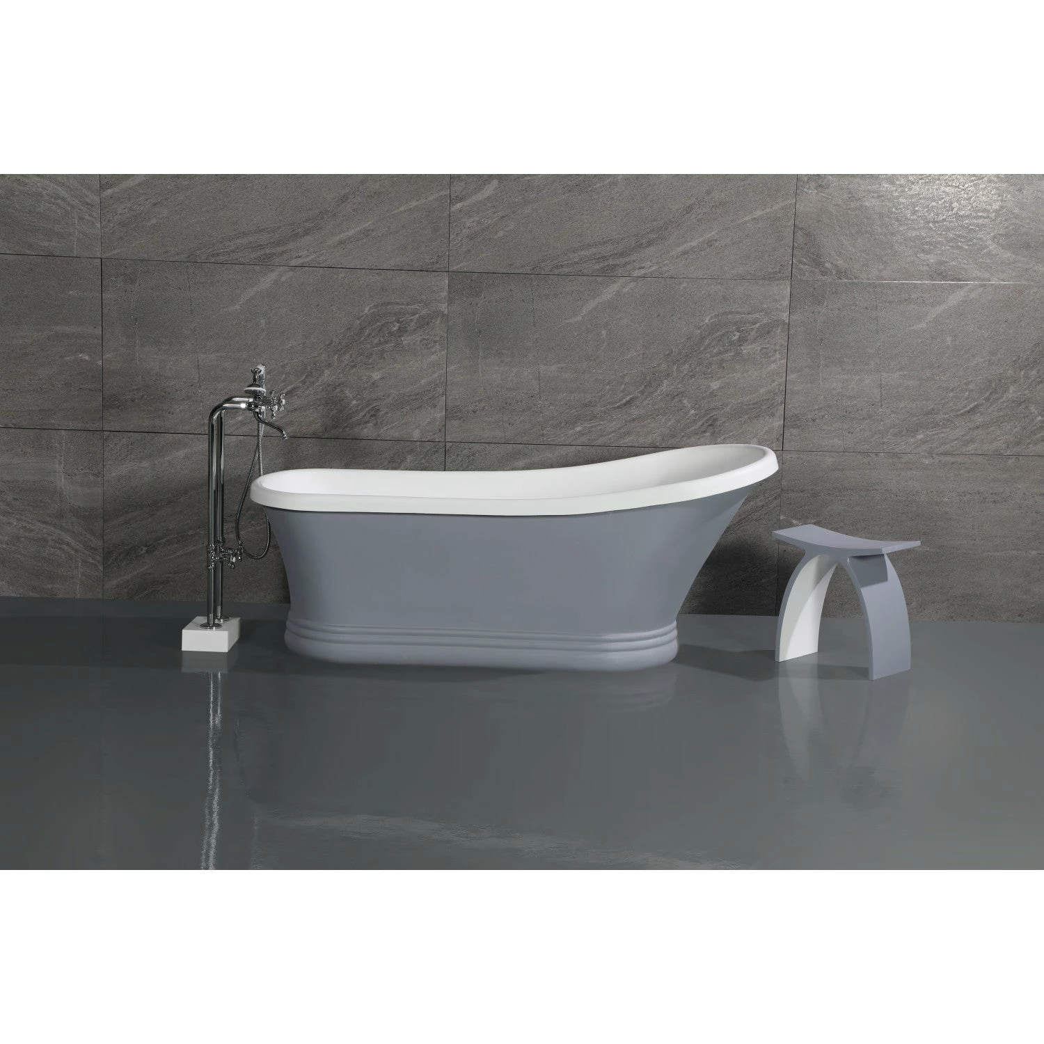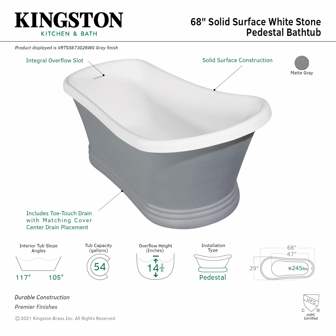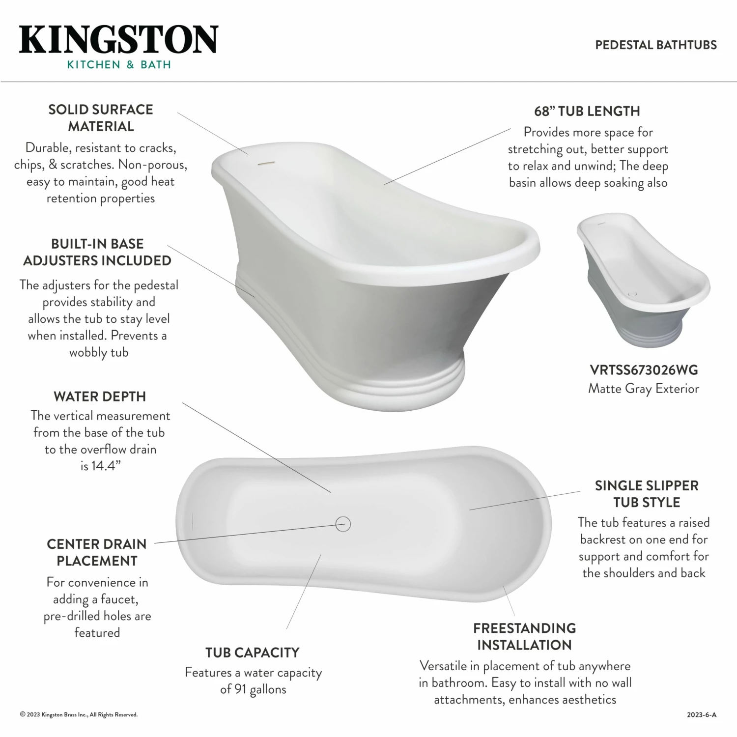 Arcticstone VRTSS673026WG 68-Inch Slipper Solid Surface Pedestal Tub with Drain, Glossy White/Matte Gray