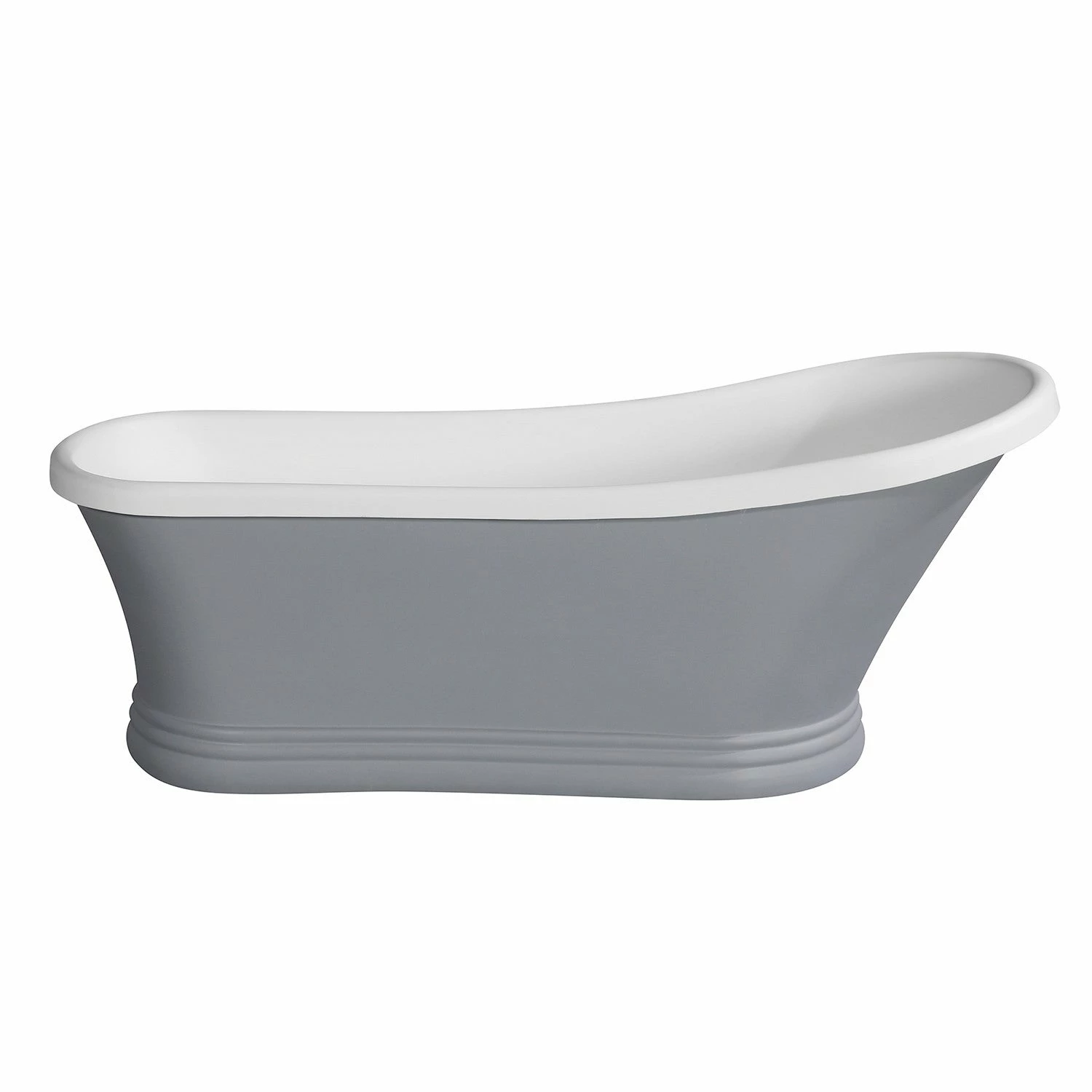 - Finished in elegant matte grey on exterior, polished glossy white on interior and tub rim