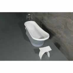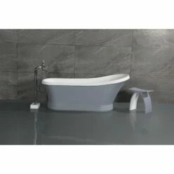 Incorporate the regal beauty of a Kingston Brass pedestal tub for years and years of luxury baths suitable for royalty. Pedestal tubs are generally categorized as the contemporary descendant of the classic clawfoot tub. However, unlike the clawfoot tub, pedestal tubs rely on a solid base ring bordering the bottom perimeter to support and raise it off the floor, giving it a one-of-a-kind personality. The Aqua Eden Arcticstone 68-inch slipper solid surface pedestal tub with drain will wholly beautify your home for years to come thanks to its durable and scratch resistant solid surface white stone construction. This bathtub’s exterior is finished in a sultry matte grey to bring a uniquely sensual designer influence into your space, while its interior and inner rim are a polished glossy white to ensure simple care and cleaning over time.