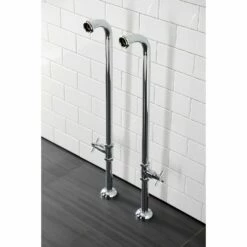 Dive into modern design with the sleek and cylindrical styling of this freestanding supplies from the Concord Collection. This freestanding tub supply line set features a floor-mount installation and 27-3/4 inch height. Constructed of solid brass material. Excellence of endurance and reliability is emboldened by a Corrosion-resistant finish, embellish your home ensemble with this freestanding water supplies. The water supplies comes in pairs and includes valve stops with cross handles. Available in a variety of finishes.