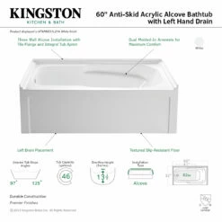Oriel VTAM6031L21A 60-Inch Anti-Skid Acrylic Alcove Tub with Left Hand Drain Hole, White