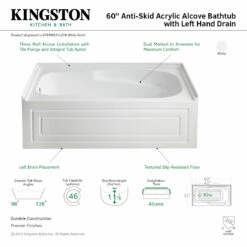 Oriel VTAM6031L21B 60-Inch Anti-Skid Acrylic Alcove Tub with Left Hand Drain Hole, White