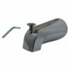 The sleek body and curved headpiece of this tub spout evokes a simplistic design, giving your bathroom a universal appeal. A featured diverter lever above the head enables water to switch its flow between the tub spout and the shower head. Choose from an array of finishes to coordinate with your bathroom ensemble.