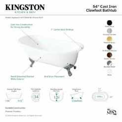 Tazatina VCT7D5431B1 54-Inch Cast Iron Single Slipper Clawfoot Tub with 7-Inch Faucet Drillings, White/Polished Chrome