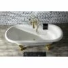 Tazatina VCT7D5431B2 54-Inch Cast Iron Single Slipper Clawfoot Tub with 7-Inch Faucet Drillings, White/Polished Brass