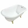 Surround yourself with the perfumed aroma of your favorite candle, grab your favorite piece of literature, and soak all of the stresses of the day away with the all-encompassing embrace of one of Kingston Brass’ finest products, the clawfoot tub. Since the late 19th century, the claw foot tub has stood prominent among bathroom fixtures for its outstanding grandeur. The Aqua Eden 57-inch cast iron slipper clawfoot tub with 7-inch faucet drillings will wholly beautify your home for years to come thanks to its durable and heavy cast iron construction. Elegantly crafted clawfoot tub feet are included to further elevate your home’s traditional eminence. Aside from its feet, this bathtub is enameled in glossy white for a classic look, exceptional durability, and easy care and maintenance for years to come.