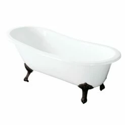 Tazatina VCTND5731B5 57-Inch Cast Iron Single Slipper Clawfoot Tub (No Faucet Drillings), White/Oil Rubbed Bronze