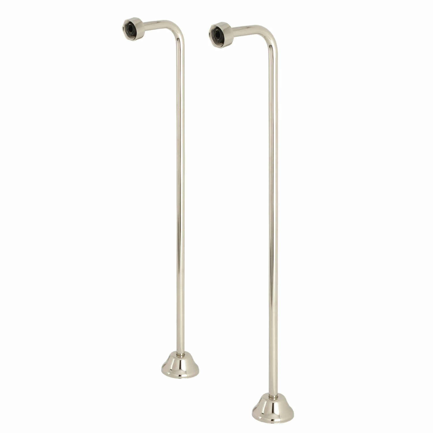 Complete your bath design with these water supplies from Kingston Brass. The water supplies are constructed from high quality brass for strong durability and reliability for years to come. Its premier finish resists tarnishing and corrosion. The supplies are sold in pairs with overall dimensions of 22-9/16 inch x 3-7/16 inch and 2-3/8 inch diameter flanges.